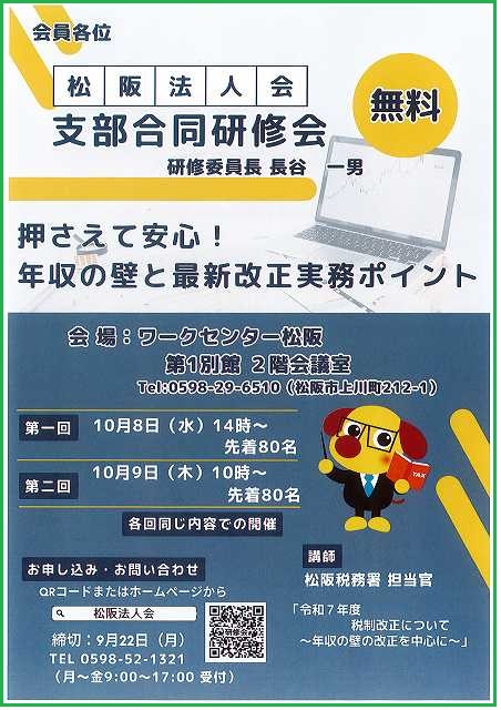 支部合同研修会をワークセンター松阪 第一別館 2階会議室にて開催いたします。