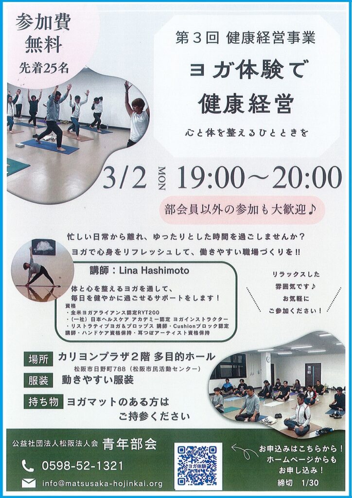 健康経営の一環として、ヨガを体験してみませんか♬