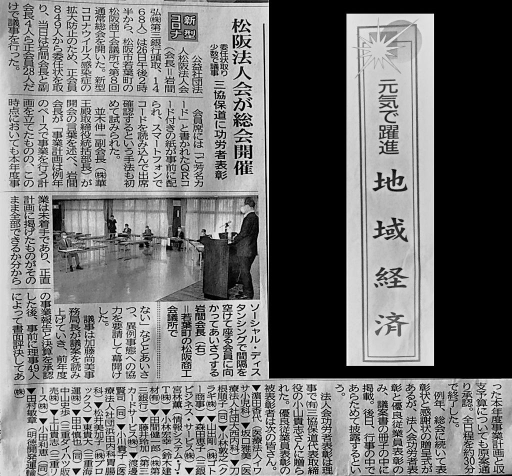 5月27日の夕刊三重に、26日に開催された第8回通常総会の記事が掲載されました。