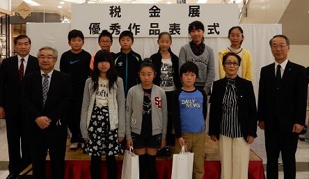 2015年11月14日 「税を考える週間」に合わせて実施されます 税金展(イオン明和に於いて)で 絵はがきコンクールの表彰式が行われました。