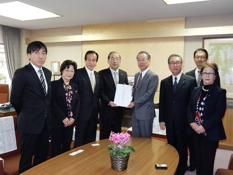 竹上市長を訪問しました。 先月12月25日、竹上市長を訪問し、岩間弘会長より「税制改正に関する提言書」をお渡しいたしました。 今回ご訪問させていただいたのは、岩間会長、平井副会長、千原税制委員長、田村青年部会長、山中女性部会長、西井女性部税制担当副部会長、山口専務理事の7名です。 私、市長室を拝見するのは初めてですが、松阪木綿のテーブルクロス、素敵ですねソファの背もたれにも私も真似してみようかなぁ 松阪市議会の大平議長にもお会いしました。