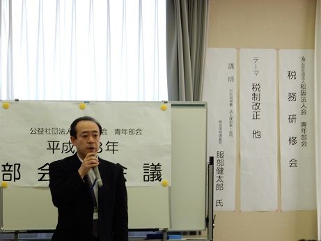 部会員会議に続いて、服部統括官の税務研修会が行われました。