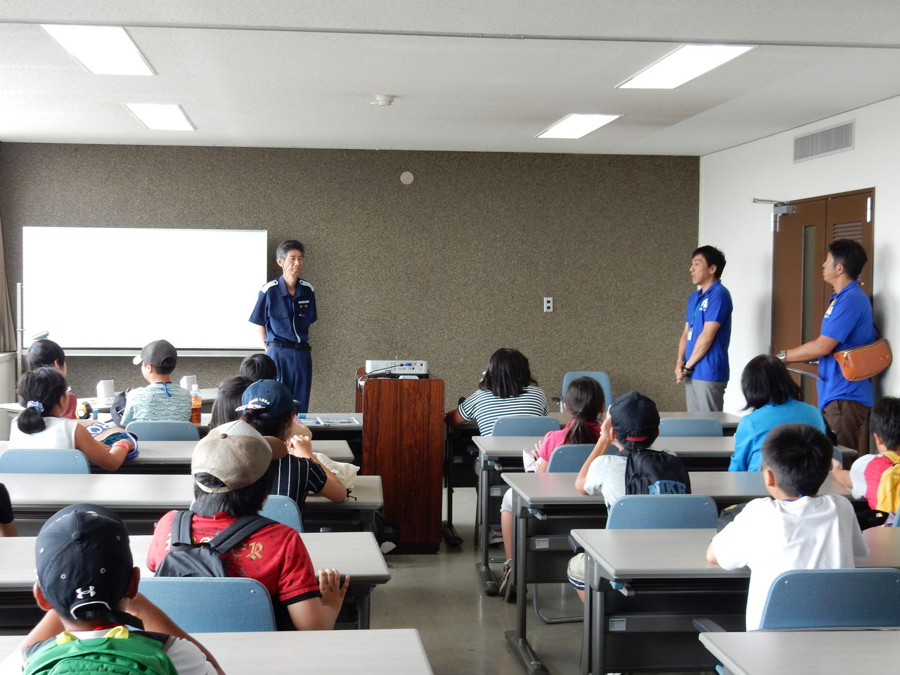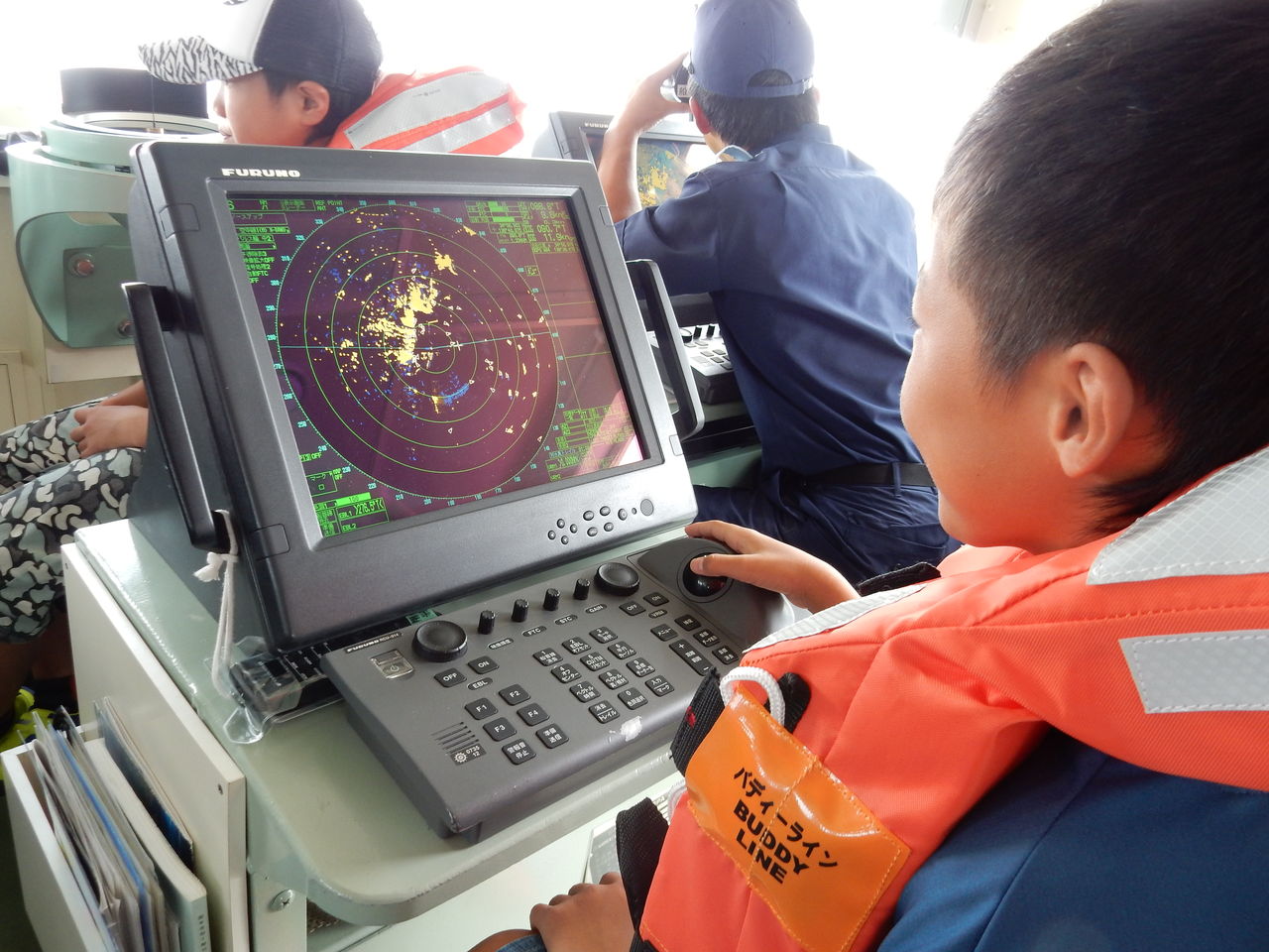 A班はまず施設見学と座学、B班は巡視船「あおたき」に乗って体験航海。