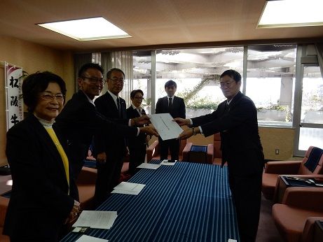 竹上松阪市長・西村松阪市議会議長を訪問しました 先日の田村代議士訪問に続き、税制改正の提言活動として竹上市長・西村市議会議長を訪問しました。写真左より・西井女性部会税制担当副部会長・千原税制委員長 ・岩間会長<竹上市長>・山中女性部会長・田村青年部会長 西村市議会議長と対談。竹上市長、西村議長、ありがとうございました。