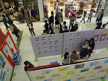 買い物客の皆さんも足を止めて作品を見て行ってくだいました。