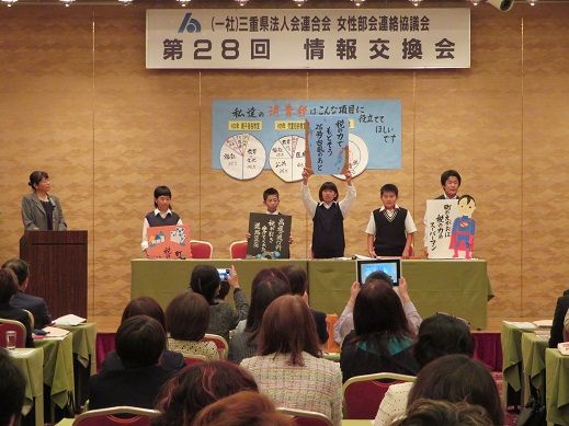 第三部は松阪法人会女性部会による発表です。市内の小学生にも参加してもらいパネルディスカッションをしながら、租税教室についての発表をしました。