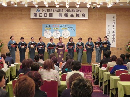 発表の最後には、松阪木綿の着物に身を包んだ女性部会員が、松阪法人会女性部会の歌を合唱して締めくくりました。