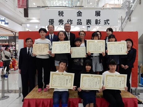 その中で、法人会が7月~9月に募集した『税に関する絵はがきコンクール』の優秀作品の表彰式が行われました。