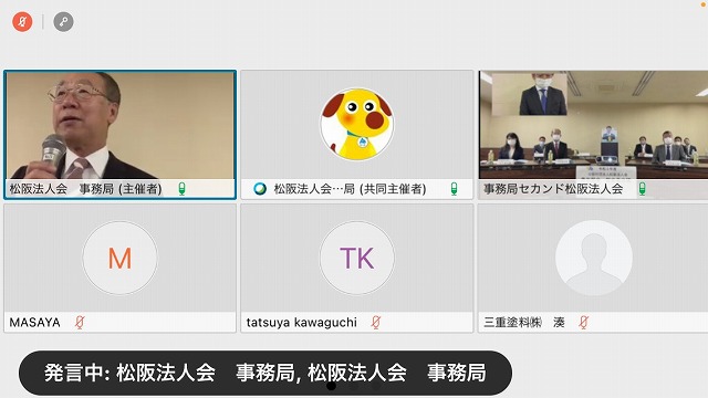 この日は松阪商工会議所をメイン会場とし、会場と部会員をオンラインで結んでのハイブリッド形式での開催。