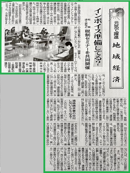 3月14日(月)の夕刊三重に、3月11日(金)松阪商工会議所 大ホールにて開催された税制セミナーに記事が掲載されました!