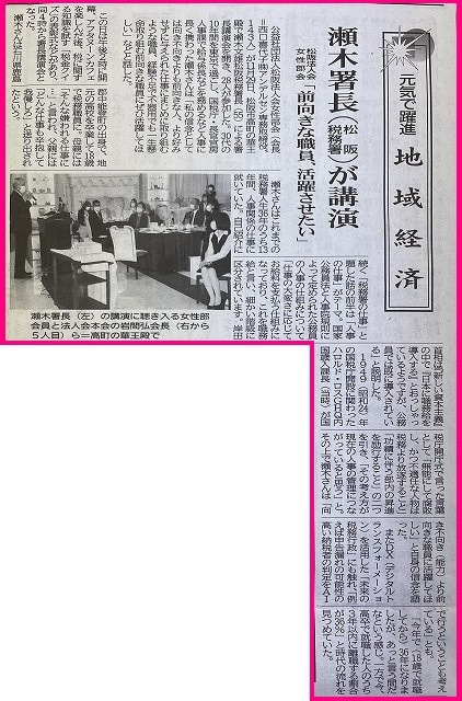 12月1日(木)の夕刊三重に、11月29日(火)華王殿にて開催しました女性部会主催「署長講演会と交流会」の模様が掲載されました。