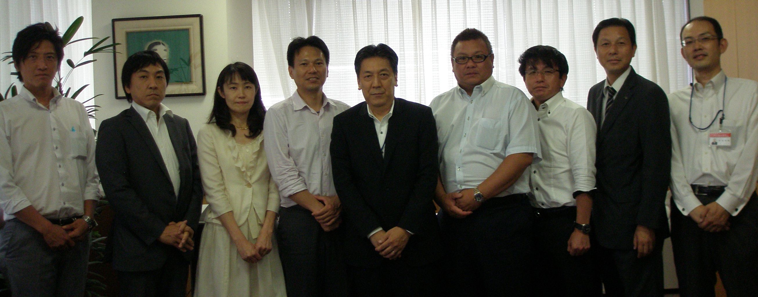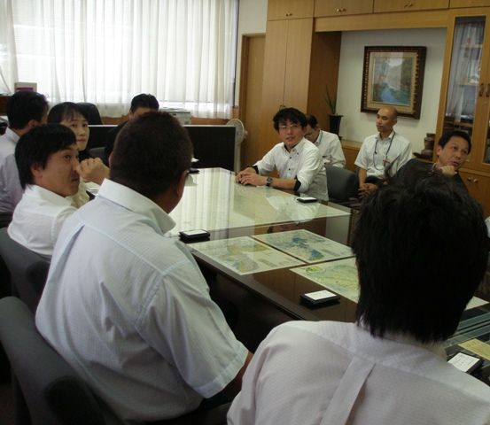 青年部会が税務署訪問 2013年7月31日 久野 浩介(くのこうすけ)署長・吉田 和博(よしだかずひろ)統括官 はじめまして 今後ともよろしくお願いします。 中井部会長から 親子そろって夏休み税金セミナーでの「寸劇」 の 脚本を 久野署長にお渡しさせていただきました。 また 今年度は 2つの新事業を企画しているので ご協力・ご指導をお願いします