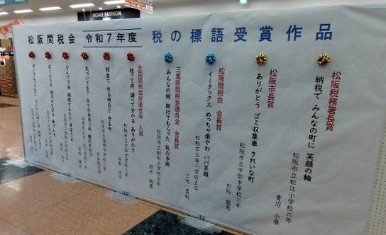 11月15・16日、アピタ松阪三雲店にて税金展が開催され、15日には、今夏に各会が募集した税に関する作品の優秀作品 表彰式が行われました。