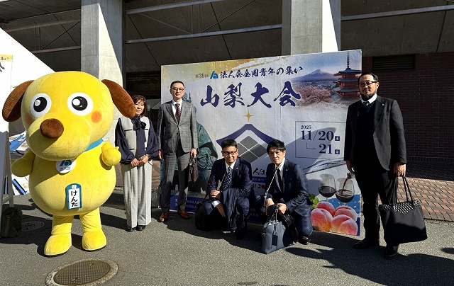 11月20日(木)~21日(金)、山梨県にて開催された「第39回法人会全国青年の集い 山梨大会」へ、当青年部会より 部会長・副部会長・委員長・顧問が参加しました。「人は石垣 人は城 ~光り輝く未来のために~」をスローガンに、全国より約1,900名が集い、租税教育活動や健康経営の事例発表、活発な討議が行われました。